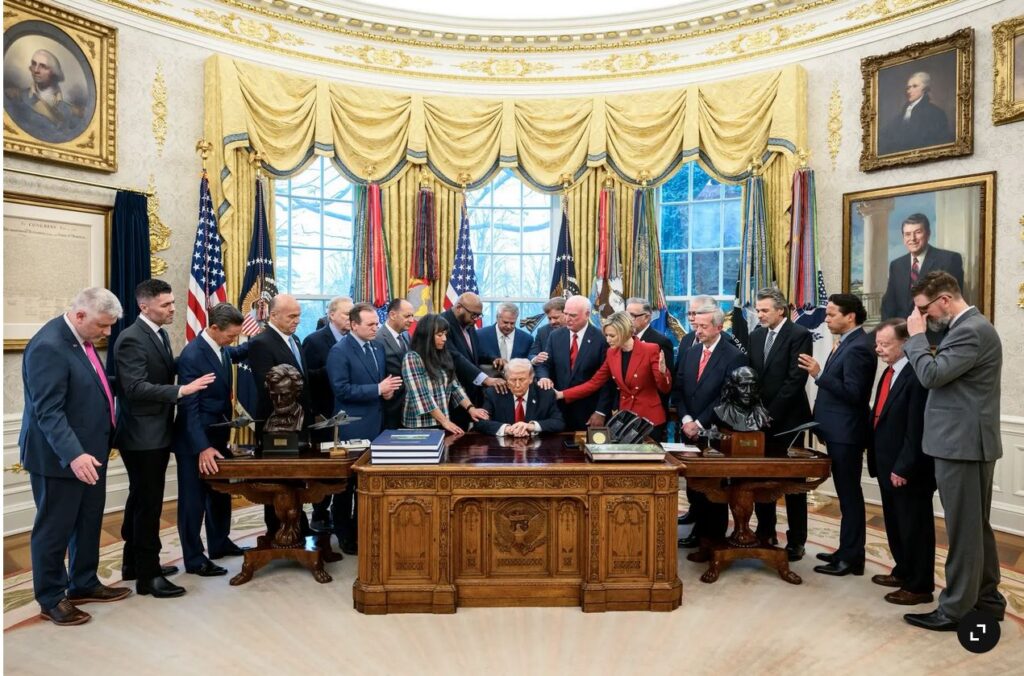 Wie beim letzten Abendmahl: Donald Trump und eine Reihe evangelikaler Priester im Oval Office. (Foto: PD, Tagesanzeiger Schweiz)