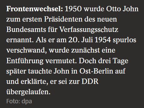 Der Herr Dr. Otto John wurde dann mit dem Amt des Leiters des Amtes für Verfassungsschutz in der BRD-West belohnt.