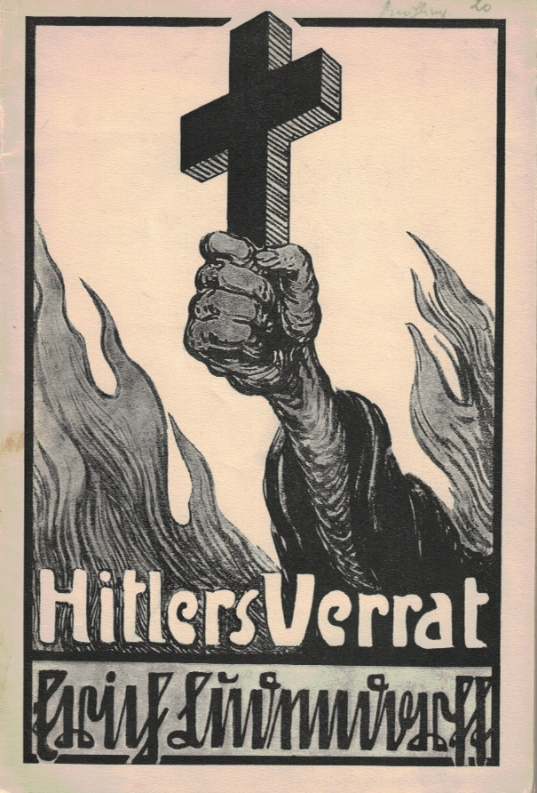 Hitler war bekanntlich Katholik und hat, als er zur Macht gekommen war, Rom die Zu-sammenarbeit angeboten. Ludendorff war entsetzt und schrieb und veröffentlichte seine Schrift: „Hitlers Verrat der Deutschen an den römischen Papst“.