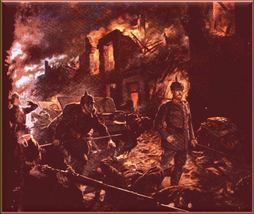 An der Spitze der 14. Infanterie-Brigade, de-ren Kommandeur Generalmajor v. Wussow im Kampf gefallen war, gelang Erich Ludendorff durch persönliche Tapferkeit und mitreißende Führung in schwerem Häuserkampf der Durchbruch durch den Festungsgürtel von Lüttich und die Zitadelle in kühnem Hand-streich zu nehmen.