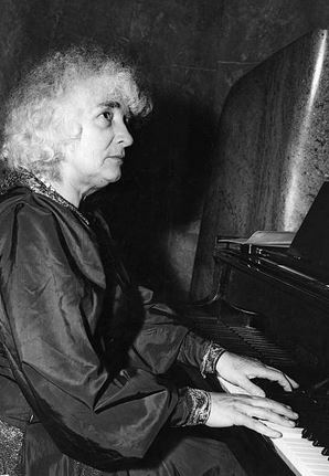 An die 1500 Menschen … füllten den Saal. Diese Frau ist wie ein Wunder – sie spielte die Waldstein-Sonate und gab das von Beethoven eigentlich dafür komponierte, dann als zu lang ausgeschiedene, ihm als Komposition so liebe Andante zu; dazu die Wanderer-Phanta-sie von Schubert und am Schluß einen großen Brahms, sie sprach ein paar Worte dazu, er-klärte uns, daß der achtzehnjährige Brahms es war, der das Werk komponierte – sie be-nutzte die Erklärung zu einer Art Apell an die versammelte Jugend, niemals den Idealismus und die Träume der Jugend zu verraten. Und dann sielte die Fünfundsiebzigjährige das Werk des Achtzehnjährigen!