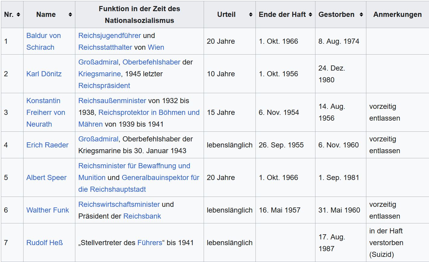 Nach Kriegsende gab es das ebenso verbrecherische, jedem Gerechtigkeitsgefühl spottende Nürnberger Tribunal, das die deutsche nationalsozialistische Führungselite zu vernichten trachtete. Hier wurde Heß als „Kriegsverbrecher“ zu lebenslänglichem Gefängnis verurteilt. Im Spandauer „Kriegsverbre-chergefängnis“ saß er diese Strafe bis an sein Lebensende als 93-Jähriger ab.