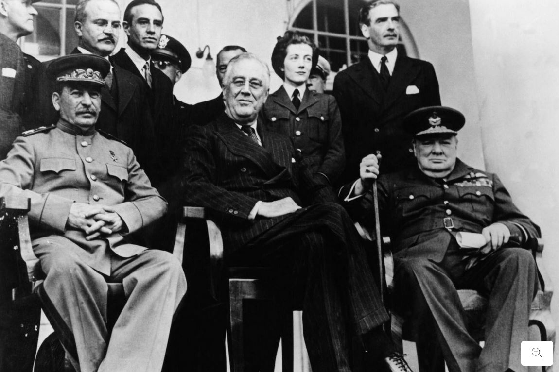 „Die großen Drei“ Massenmörder in Teheran 1943, die die Fortsetzung des Krieges gegen Deutschland bis zur „Bedingungslosen Kapitulation“ beschlossen (welt)