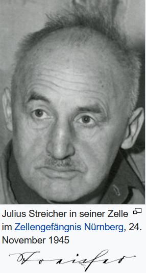 Der Lehrer Julius Streicher hatte kein Verbre-chen gegen den Frieden begangen und kei-nen Krieg angezettelt wie die Briten, er hatte kein Verbrechen gegen die Menschlichkeit begangen, keine Menschen verschleppt oder Frauen anderer Nationen zu Tode vergewal-tigt.