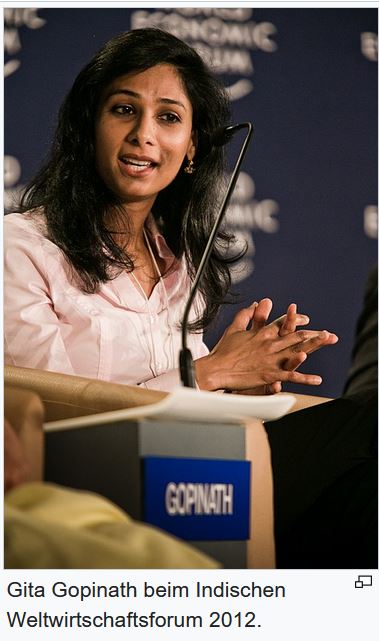 Die frühere Chefökonomin des IWF, Gita Gopinath, schrieb jüngst in einem Aufsatz für den Econo-mist:
