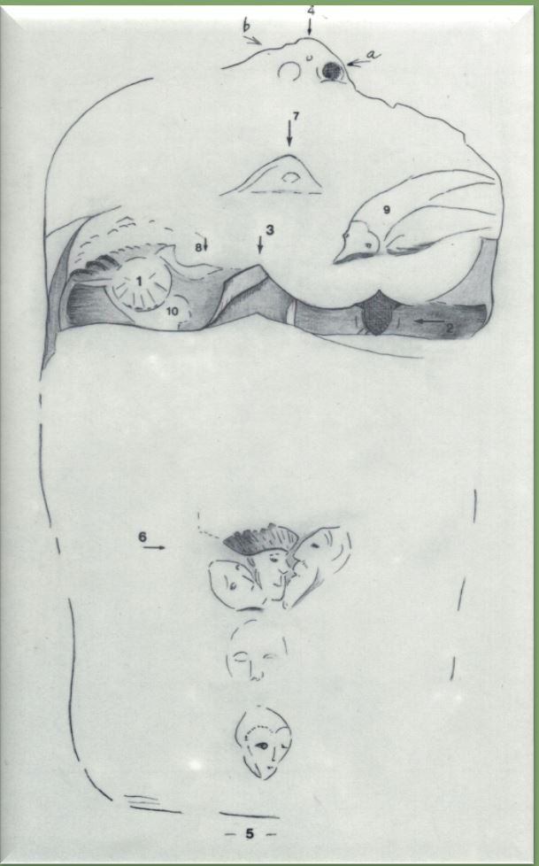 Unsere Altvorderen hatten diese beiden Erkenntnis-fähigkeiten – wie die Forscherin Elisabeth Neumann-Gundrum 60 Jahre später in Felsformationen Europas, besonders am Istenberg im Hochsauerland und im Bereich der Externsteine entdeckte – bereits vor schätzungsweise 20.000 und mehr Jahren in Stein gemeißelt mit der Darstellung der Zwiesicht kundgetan: